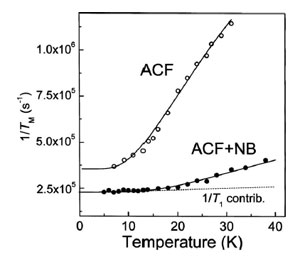 Electron spin relaxation and quantum localization in carbon nanoparticle: Electron spin echo studies We present pulsed electron spin resonance measurements of activated carbon fibers (ACFs) for pristine samples and after adsorption of nitrobenzene in the fibers’ porous structure. Two-level tunneling state (TLS) model is discussed in order to define the nature of paramagnetic centers and to explain the electron spin-lattice relaxation mechanism in the studied system. Stefan Lijewski, Magdalena Wencka, Stanislaw K. Hoffmann, Mateusz Kempinski, Wojciech Kempinski, Malgorzata Sliwinska-Bartkowiak PHYSICAL REVIEW B 77, 014304 (2008)